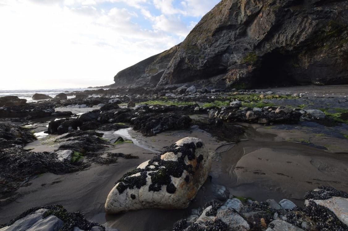 There are lots of interesting rocks and rock pools to explore, and even a small cave with a waterfall.